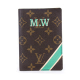 Details: Brown And Tan Monogram Coated Canvas / Special Order With "M.W" Initials / Green Leather Inside / Leather Lining / Three Interior Slip Pockets / Three Card Slots