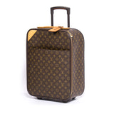 Details: Brown and Tan Monogram Coated Canvas / Brass Hardware / Tan Vachetta Leather Trim / Slit Pocket at Front Face / Brown Nylon Lining / Three Pockets at Interior Walls With Zip Closures / Dual Clothing Separators With Velcro Closures and Zip-Around Closure / Flat Top Handle / Two Level Telescopic Handle / Louis Vuitton Name Tag / Cabin Size