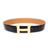 Details: Black And Tan Reversible Leather / Gold Tone H Buckle / Peg In Hole Closure