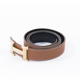 Description: Authentic Pre-Owned Hermès Tan and Black Reversible H Belt