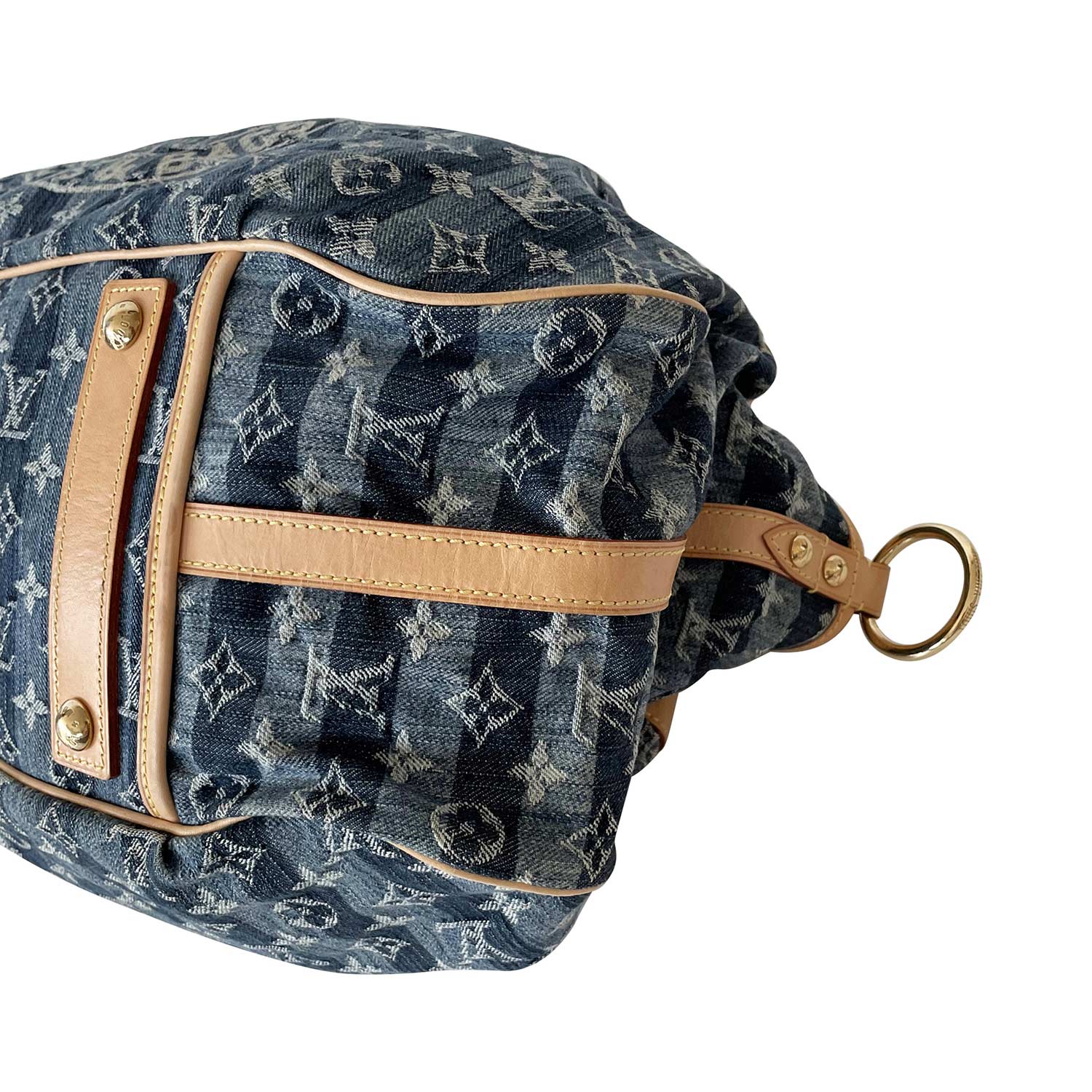Description: Authentic Pre-Owned Louis Vuitton Denim Porte Epaule Raye Cabas Bag
