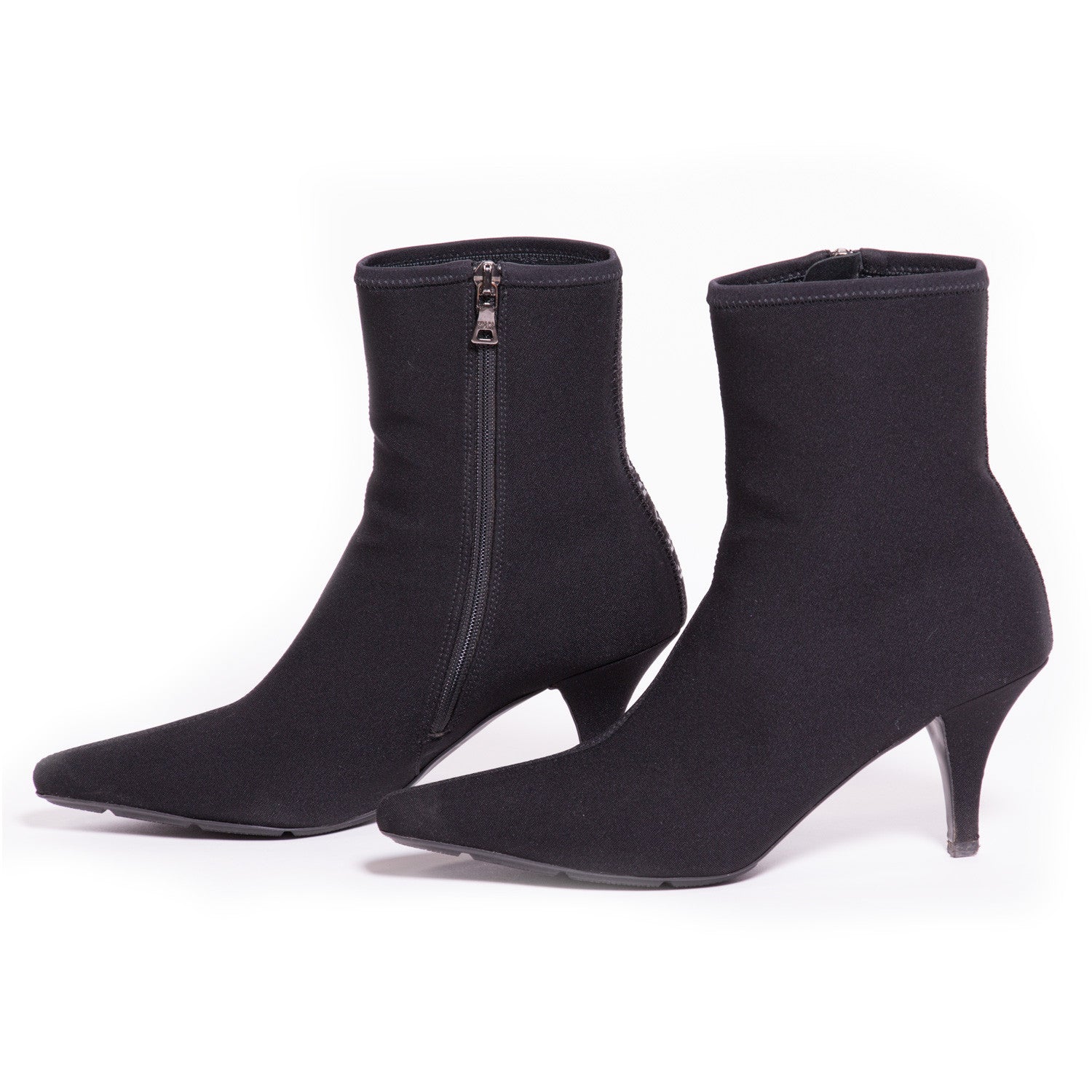 Details: Black Suede Prada / Pointed Toe Ankle Boots with Tonal Stitching / Covered Heels / Zip Closure at Sides