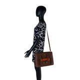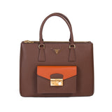 Details: Brown Saffiano Leather / Gold Tone Hardware / Dual Rolled Handles / Adjustable and Removable Shoulder Strap / Dual Zipper Exterior Pocket / Exterior Small Pocket at Front / One Zip Pocket and Three Slit Pocket at Interior