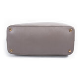 Details: Grey Etoupe Saffiano Leather / Gold-Tone Hardware / Dual Rolled Handles / Black Fabric Lining / Three Compartments, Two with Zip Closure / Four Pockets at Interior, One with Zip Closure.