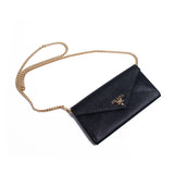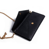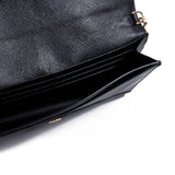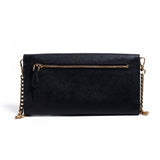 Details: Black Saffiano Leather / Gold-Tone Hardware / Detachable Shoulder Strap / Zipper Pocket at Back / Dual Compartment / Six-Card Slots / Bill Compartment / Magnetic Snap Closure at Front /