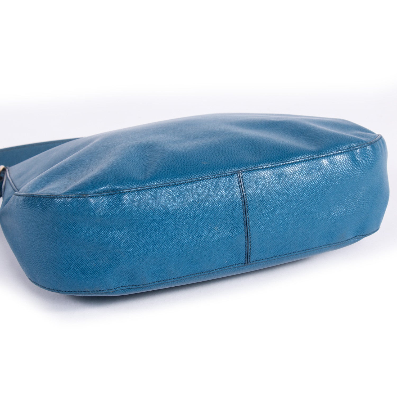 Details: Blue Leather / Gold-Tone Hardware / Single Adjustable Shoulder Strap / Luggage Name Tag Attached / Single Compartment / Dual Slit Pockets At Interior Wall / Zip Pocket At Interior / Zip Closure At Top
