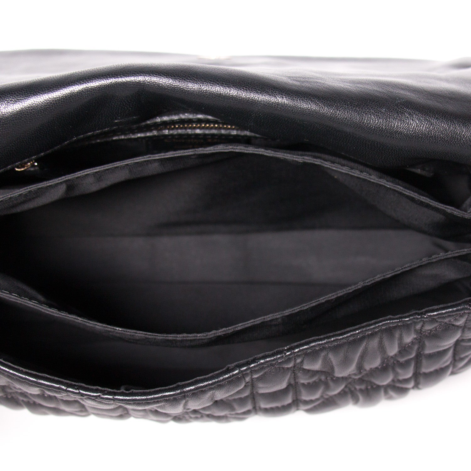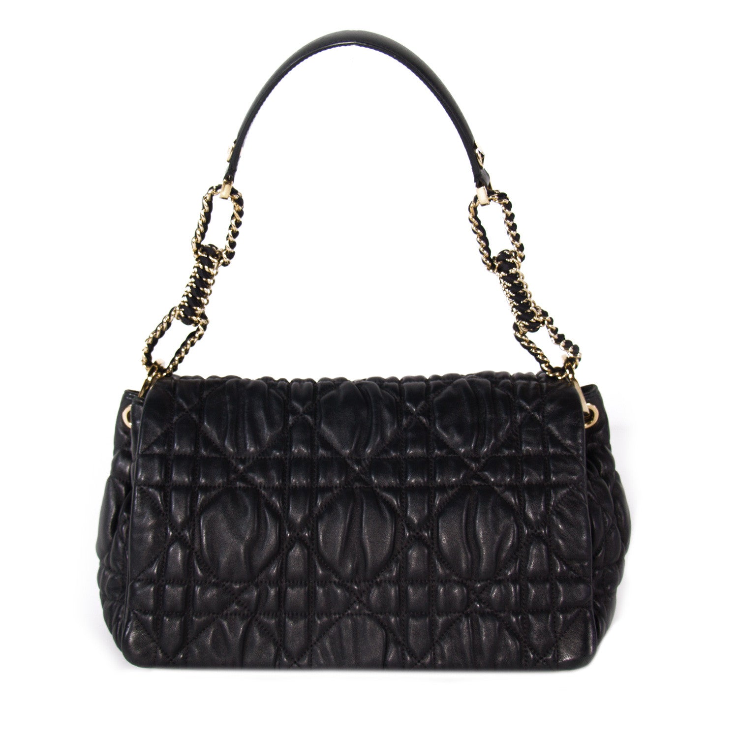 Details: Black Cannage Lambskin Leather / Gold-Tone Hardware / Chain-Link and Leather Shoulder Strap / Black Fabric Interior Lining / Three Compartments / Zip Pocket at Interior Wall / Magnetic Snap Closure at Front Flap