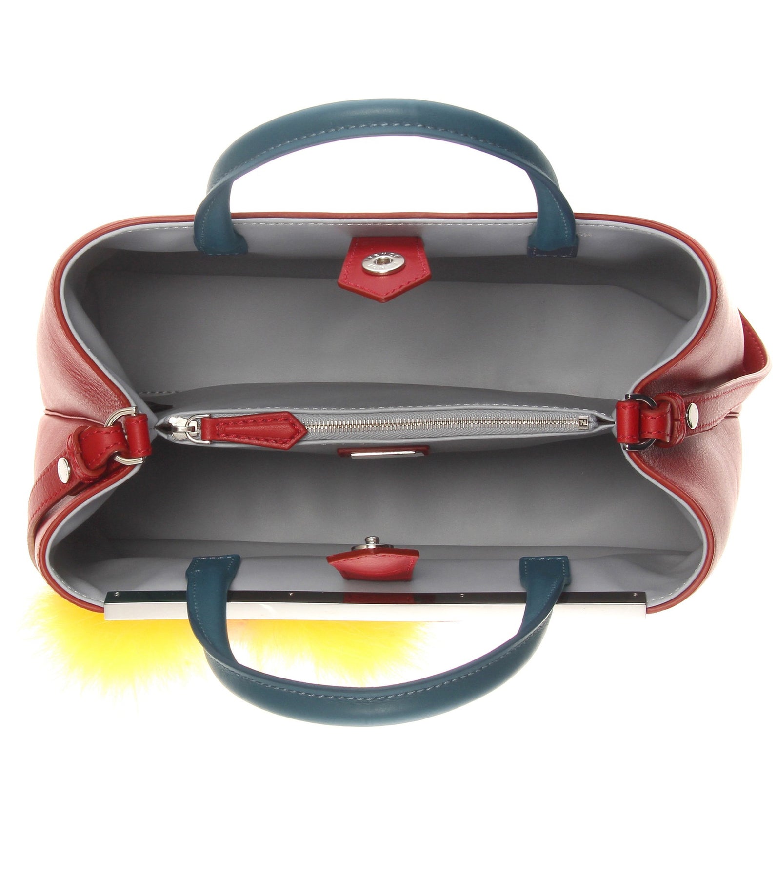 Details: Red Soft Calfskin Leather / Silver Tone Hardware / Palladium Bar And Metalware And Engraved Fendi Logo / Dual Blue Rolled Handles / Adjustable Detachable Red Shoulder Strap / Embellished Mink Fur Character At front With Crystal Detailing / Grey Leather Interior Lining / Two Internal Compartments With Zipped Centre Compartment / Magnetic Snap Closure At Top