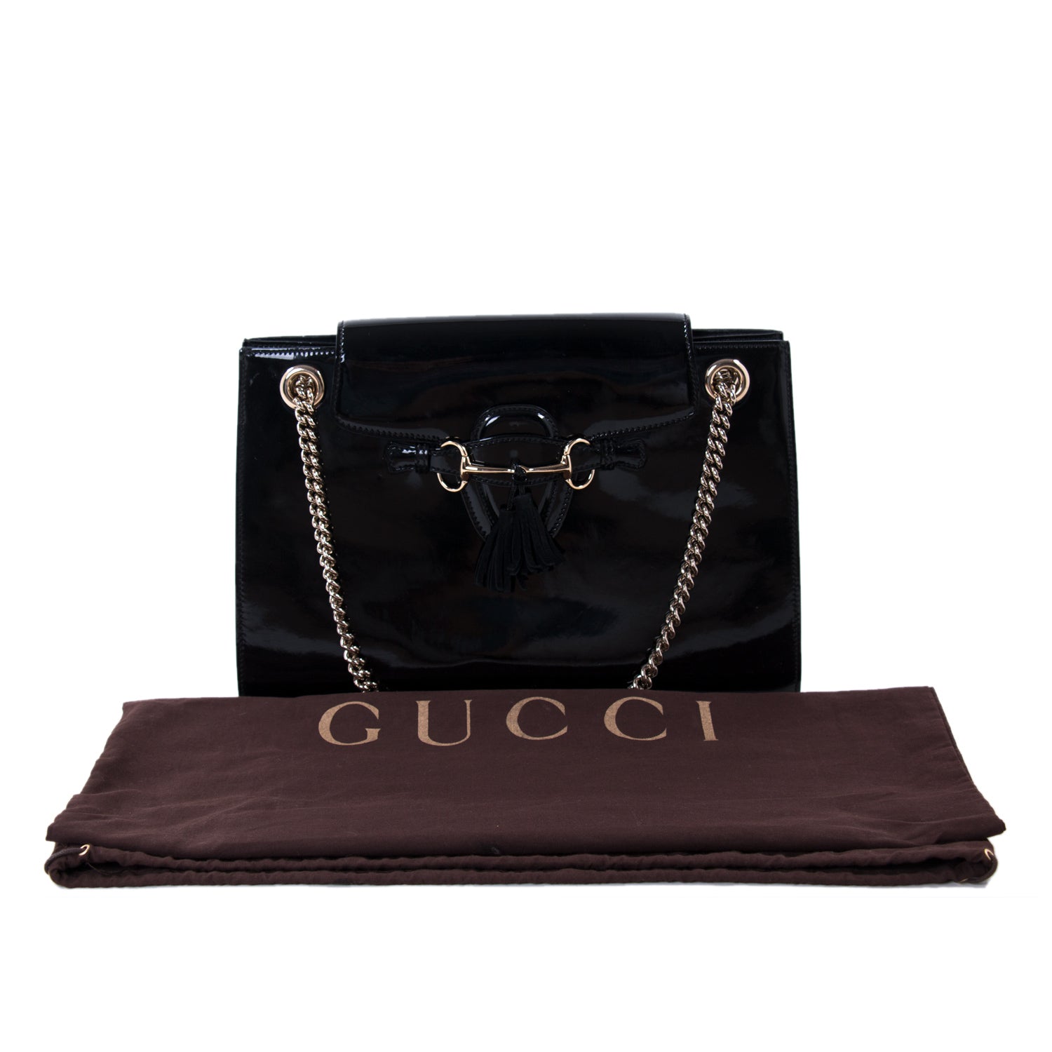 Description: Authentic Pre-Owned Gucci Emily Large Patent Leather Shoulder Bag