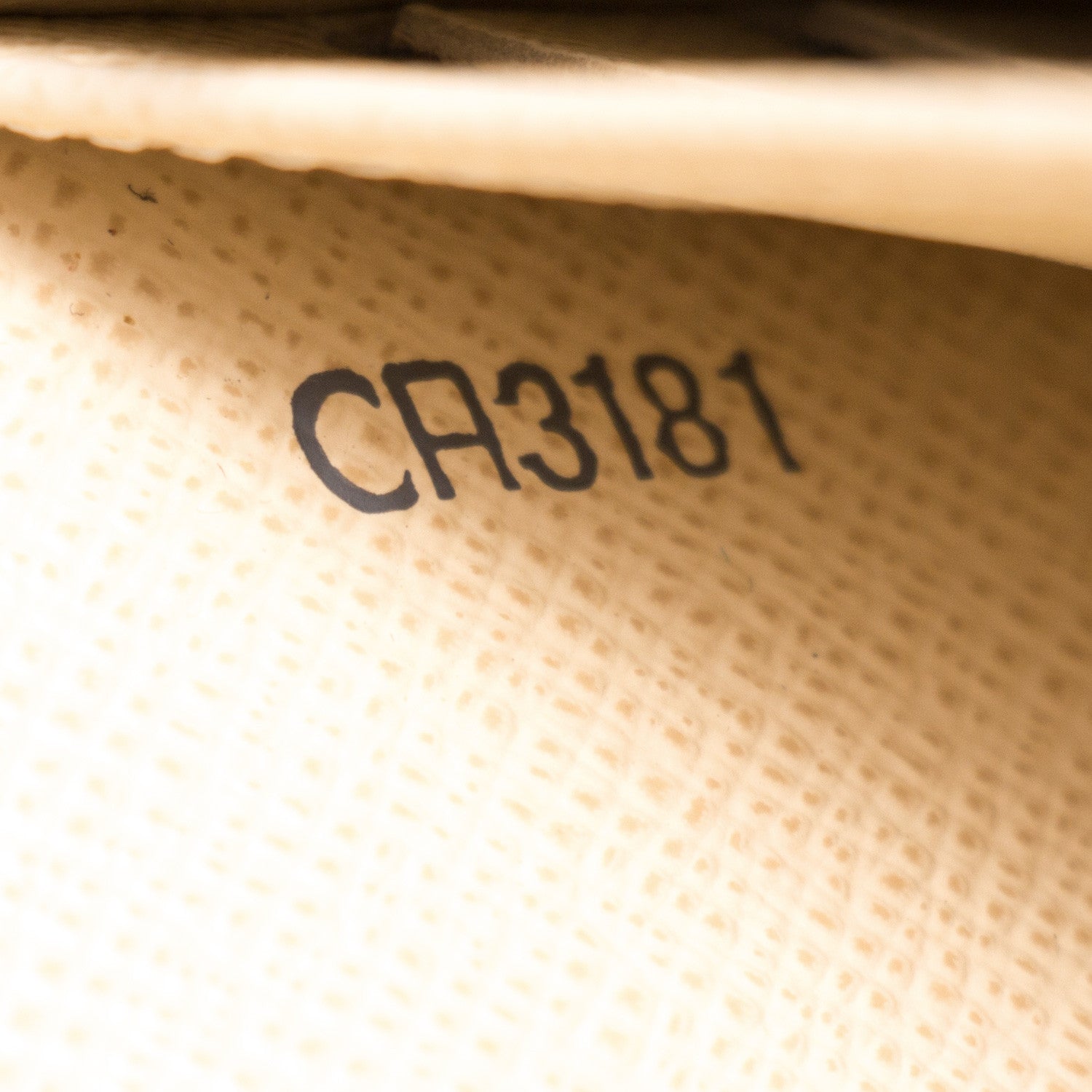 Details: Navy And Cream Damier Azur Coated Canvas Leather / Brass Hardware / Creme Coated Lining / Creme Leather At Interior / Four Compartments, One With Zip Closure / Ten Card Slots / Magnetic Snap Closure At Front