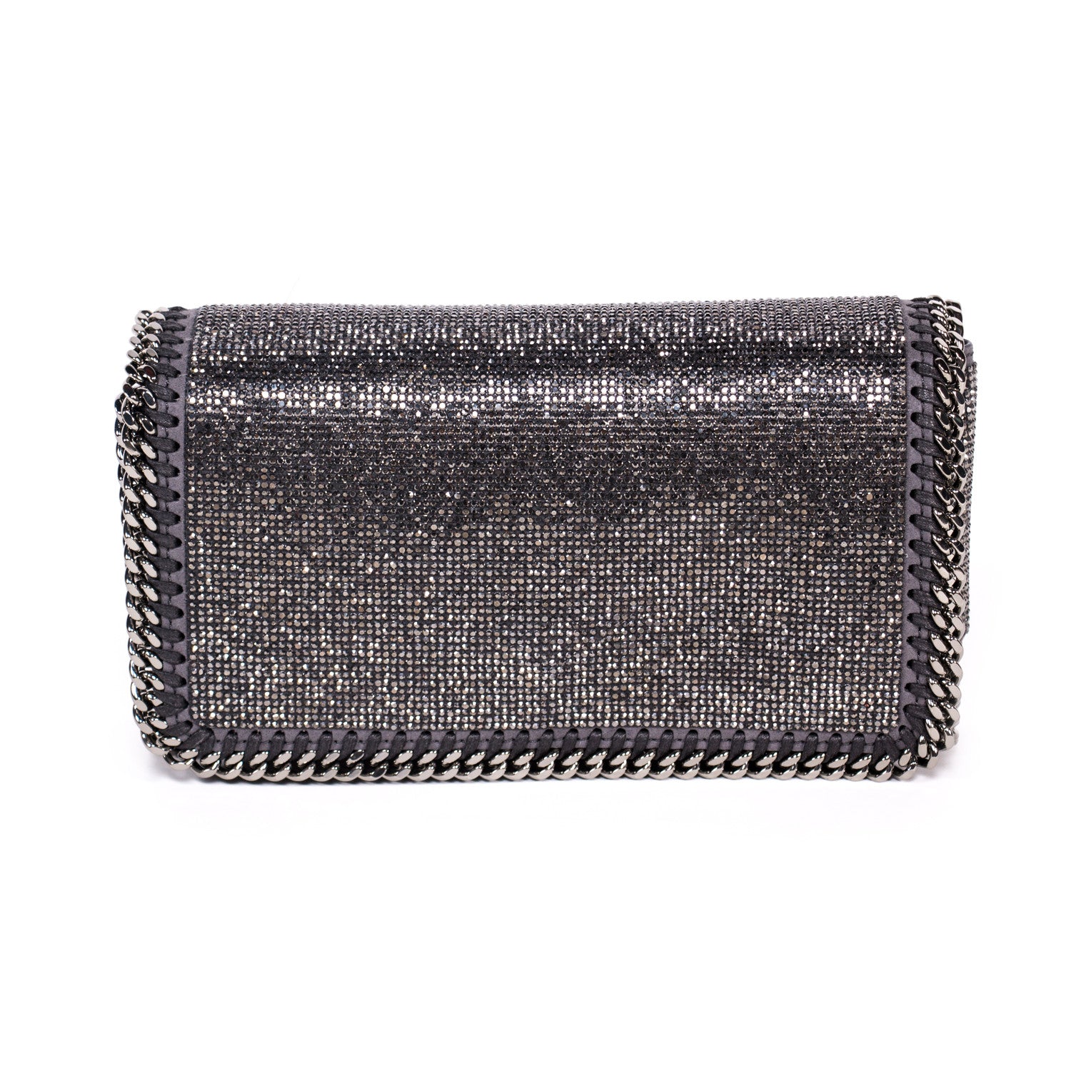Details: Grey And Silver Crystal Embellished Shoulder Bag / Silver-Tone Hardware / Crystal Adornments Throughout / Concealed Chain Shoulder Strap / Grey Fabric Lining At Interior / Single Internal Slit Pocket / Magnetic Snap Closure At Front Flap