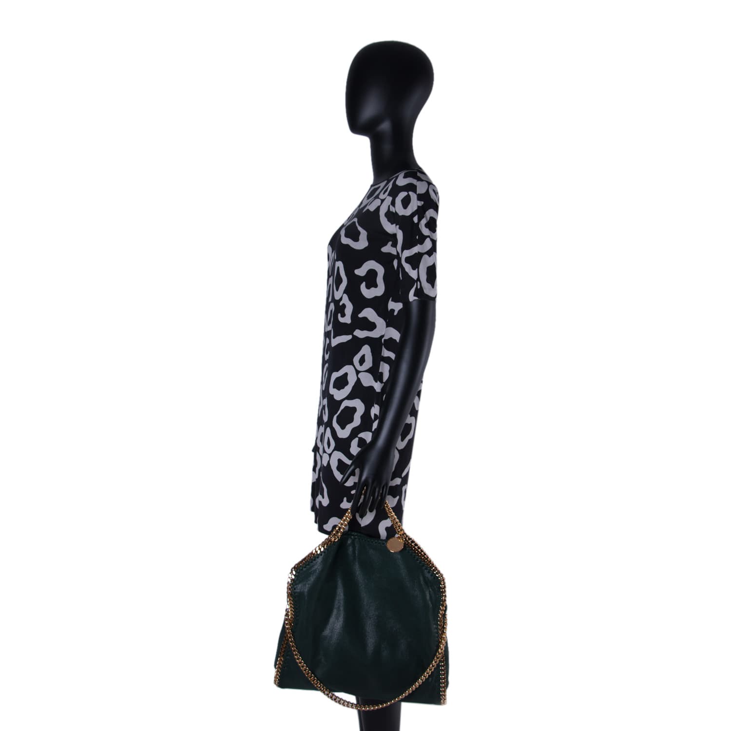 Details: Green Vegan Leather / Gold-Tone Gunmetal Hardware Chain / Dual Chained Handles / Chained Shoulder Strap / Pink Printed Interior Lining / Zipped Pocket at Inside / Magnetic Snap Closure at Top