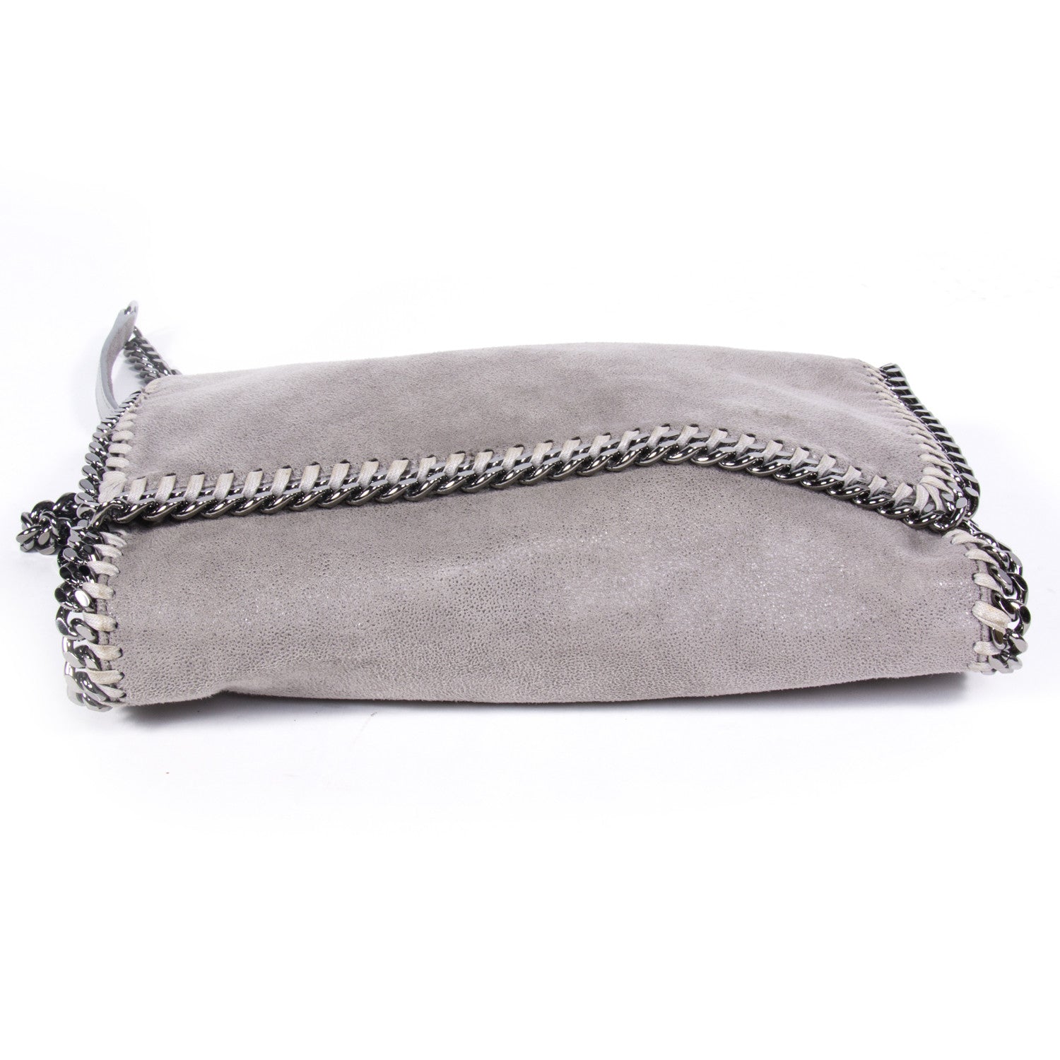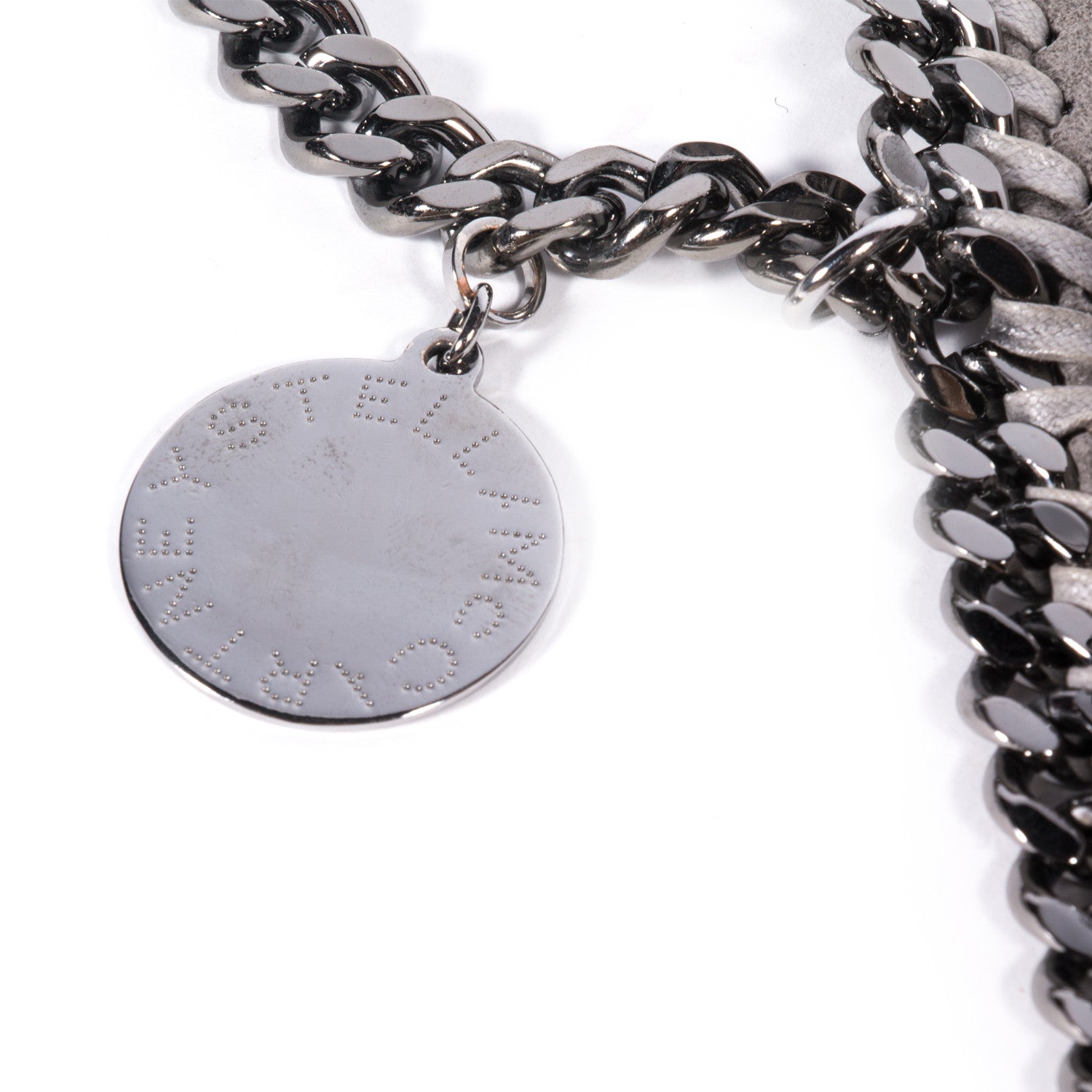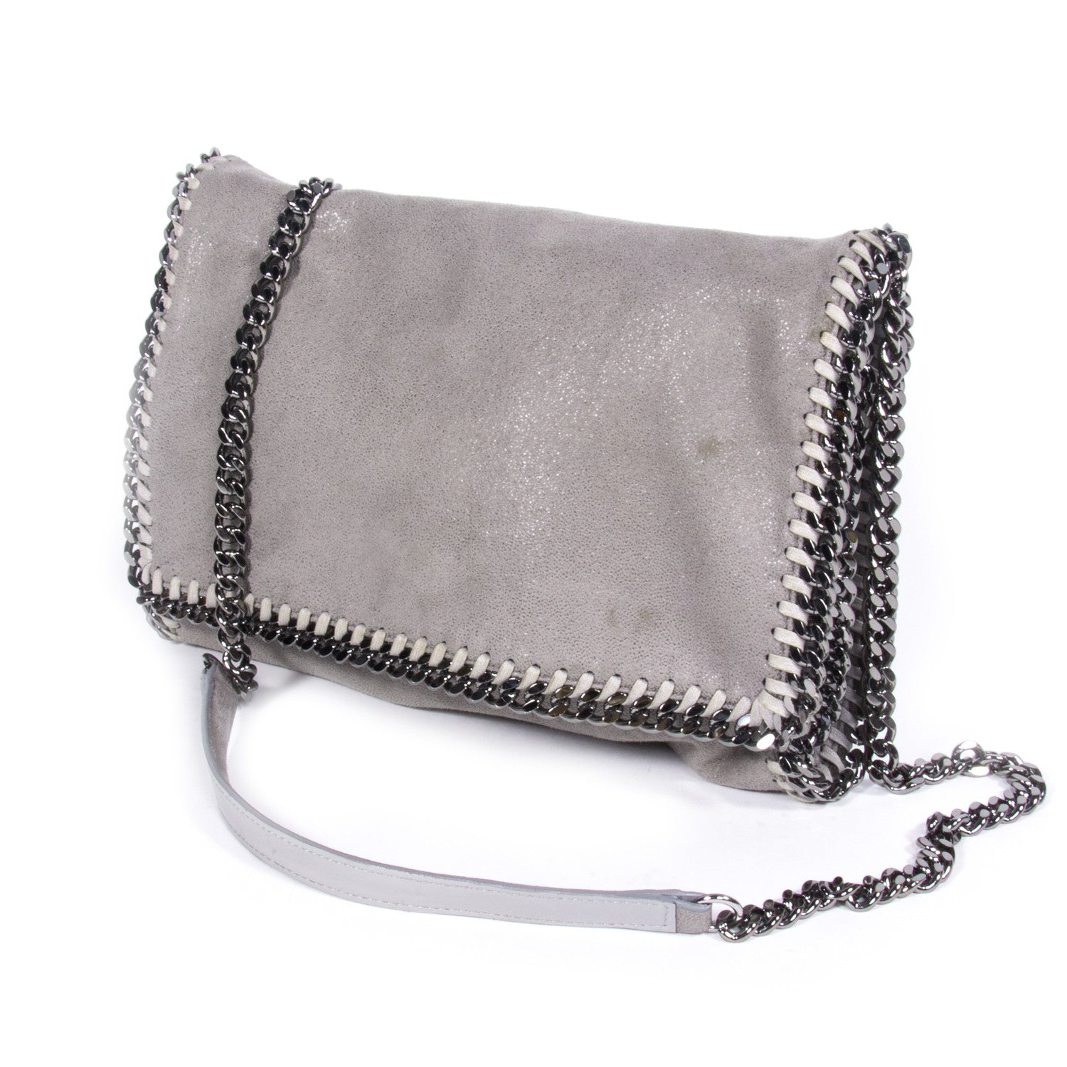 Details: Gray Vegan Leather / Crossbody / Gunmetal Hardware / Logo Medallion At Front / Whipstitch And Chain Trim / Single Chain Link Crossbody Strap / Gold Logo Print Interior Woven Lining / Single Compartment With Zip Pocket Closure At Interior Wall / Magnetic Closure At Front Flap
