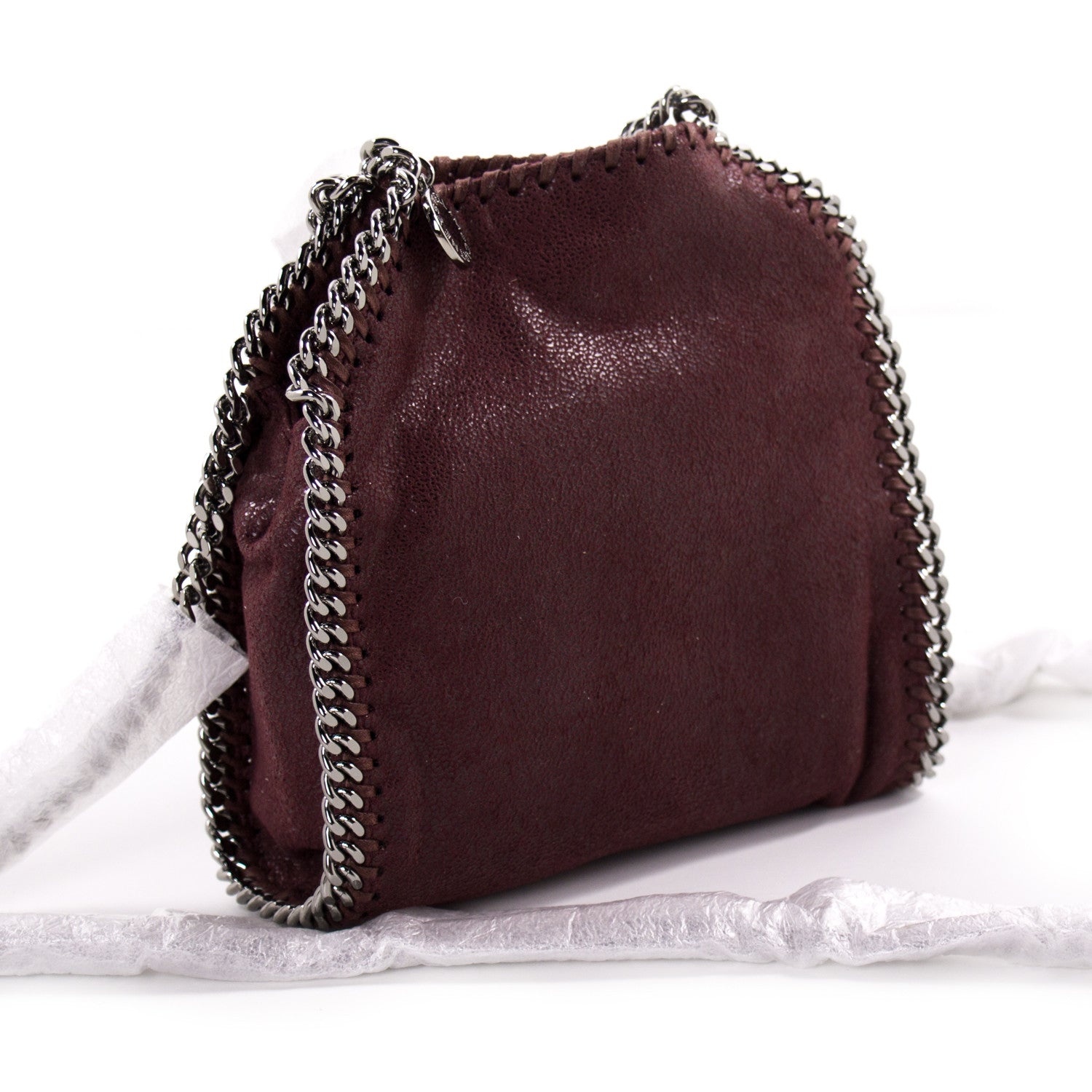 Details: Burgundy Vegan Leather / Silver-Tone Hardware / Dual Rolled Handles / Chain-Link Shoulder Strap / Fabric Interior Lining / Flat Pocket at Inside / Magnetic Snap Closure