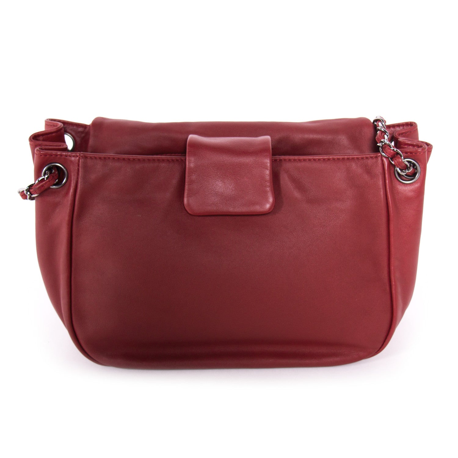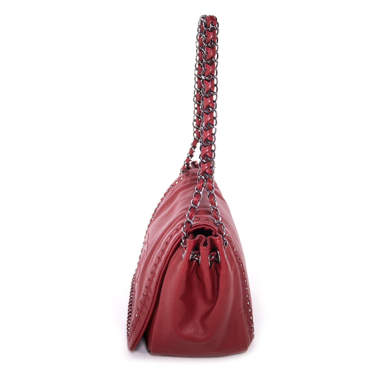Details: Burgundy Leather / Silver-Tone Hardware / Braided Leather And Chain Shoulder Strap / Tonal Stitching / Logo At Front / Beige Leather Interior Lining / Dual Pockets At Interior Walls, One With Zip Closure / Interior Magnetic Snap Closure / Flap Closure At Front