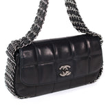 Details: Black Quilted Smooth Leather / Silver-Tone Hardware / Five Chain-Link Shoulder Straps Wrapping The Bag From The Bottom And Edges / Single Compartment / Printed Woven Lining At Interior / Flat Pocket And Zip Pocket / Turn Lock Closure At Front Flap