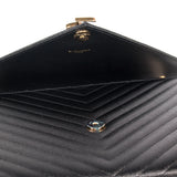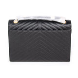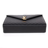 Details: Chevron Black Quilted Leather / Gold Tone Hardware / Dual Chain-Link And Leather Shoulder Strap / Exterior Pocket At Back / YSL Adornment Logo At Front / Single Compartment / Single Zip Pocket / Magnetic Snap Closure At Front Flap