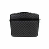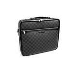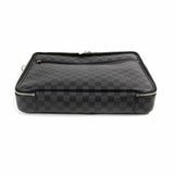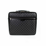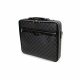 Details: Black and Blue Damier Graphite Coated Canvas / Silver Hardware / Black Leather Trim / Top Handle / Front Pocket with Zipper / Back Flat Pocket / Black Interior Lining / 3 Compartments, Card Slots and Zipper Pocket / Double Zip Closure
