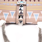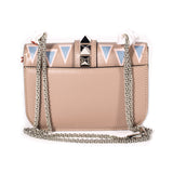 Details: Poudre And Multi-Color Calf Leather / Silver Tone Hardware / Geometric Cut Motif From The Front And Back / Silver-Tone Rockstuds Line Embellishments On The Front Face / Chain Shoulder Strap / Leather Lining / Single Compartment / Zip Pocket And Slit Pocket / Push-Lock Fastening Closure At Front Flap