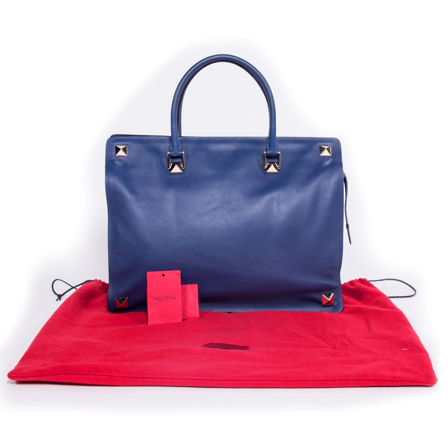 Description: Valentino Blue Leather Double Handle Bag