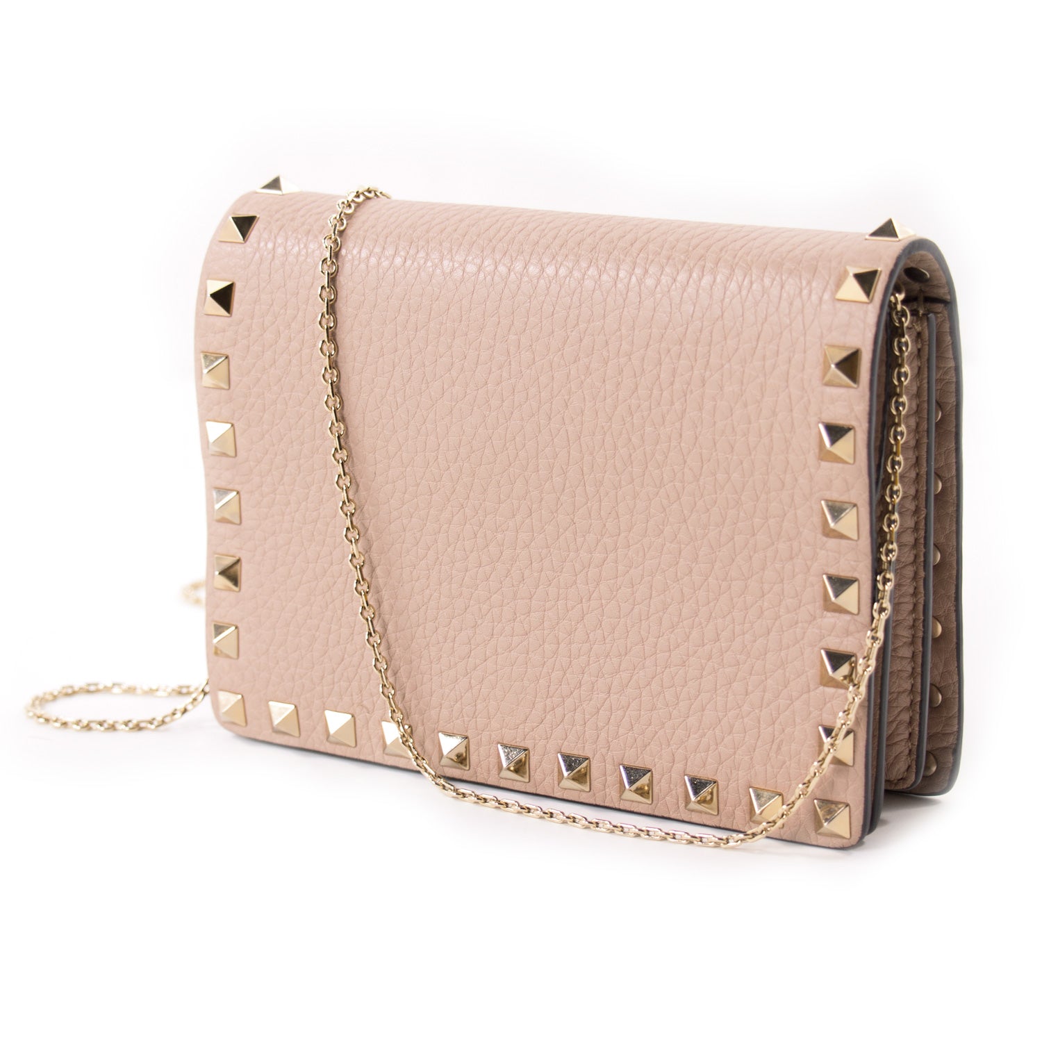 Details: Poudre Grained Calf Leather / Gold-Tone Hardware / Long Chain Shoulder Strap / Stud Embellishments Throughout the Front and Back / Leather and Suede Interior Lining / 3 Card Slots / One Zip Pocket / Snap Closure at Front Flap