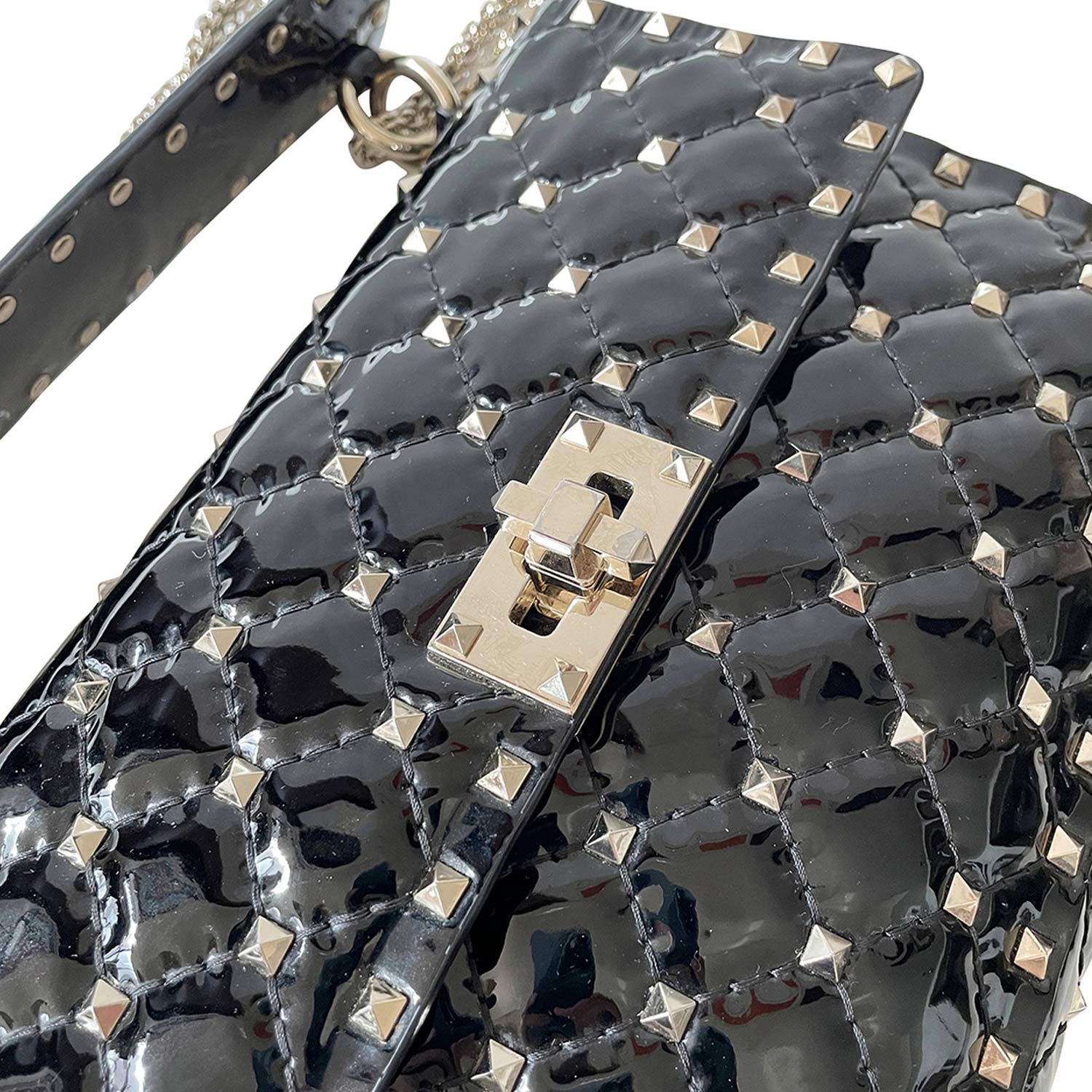 Description: Authentic Pre-Owned Valentino Rockstud Spike Medium Chain Shoulder Bag