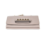 Details: Nude Leather / Light Gold-Tone Hardware / Detachable and Convertible Shoulder Strap / Hand Strap at Front Face Featuring Rockstud Accents / Black Leather Trim / Dual Compartment at Inside with a Flat Pocket / Magnetic Snap Closure at Front Face