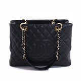 Description: Authentic Pre-Owned Chanel Black Caviar Leather Grand Shopping Tote