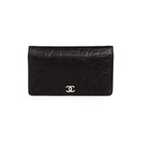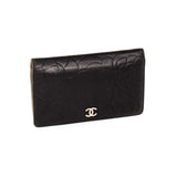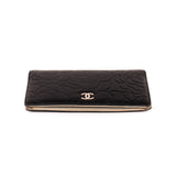 Details: Black Embossed Leather / Silver Tone Hardware / Interlocking CC At Front Face / Grey Leather Interior With Satin Lining / Eight Card Slots / Six Compartments One With Zip Closure / Fold Closure