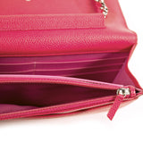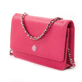 Details: Pink Caviar Grained Leather / Silver-Tone Hardware / Chain-Link Shoulder Strap With Pink Leather Accent / Interior Leather And Satin Lining / Single Compartment / Three Pockets At Interior, One With Zip Closure / Six Card Slots At Interior Wall / Zip Pocket Inside The Front Flap / Push Button Closure At Front Flap