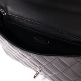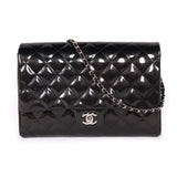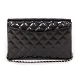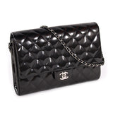 Details: Black Patent Quilted Leather / Silver-Tone Hardware / Single Shoulder Strap / Exterior Pocket At Back / Single Compartment / Flat Pocket At Interior / Turn Lock Closure At Front Flap