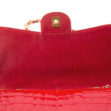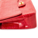 Details: Red Crocodile Leather / Gold-Tone Hardware / Chain-Link Leather Shoulder Strap / Leather Lining / Single Compartment with Flat and Zip Pocket / Single Flap at Front with Turn-Lock Closure
