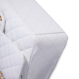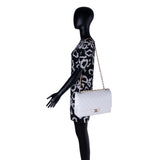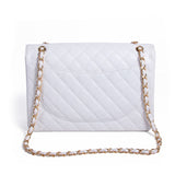 Details: White Caviar Leather / Gold-Tone Hardware / Dual Chain-Link Leather Shoulder Strap / White Leather at Interior / Large and Small Compartment / Dual Flat and Zip Pocket at Inside / Turn Lock Closure at Front