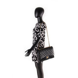 Details: Black Caviar Leather / Gold-Tone Hardware / Dual Chain-Link Leather Shoulder Strap / White Leather at Interior / Large and Small Compartment / Dual Flat and Zip Pocket at Inside / Turn Lock Closure at Front