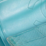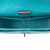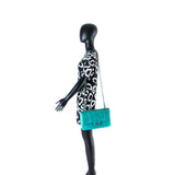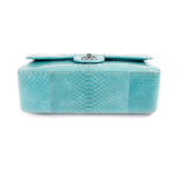Details: Light Green Python Leather / Silver-Tone Hardware / Chain-Link Leather Shoulder Strap / Leather Lining / Dual Compartments with Two Flat and Zip Pockets / Double Flap at Front with Turn-Lock Closure