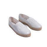 Details: White Glazed Leather / CC Logo at Vamps / Jute Trims / Rubber Sole