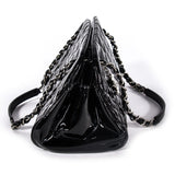 Details: Black Patent Quilted Leather / Silver Tone Hardware / Dual Chain-Link Leather Shoulder Strap / Interior Woven Lining / Three Compartment, One With Zip Closure / Zip Pocket At Interior Wall / Small Slit Pocket