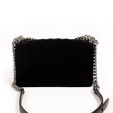 Description: Black Quilted Velvet / Silver Hardware / Chain-Link and Leather Shoulder Strap / Single Compartment / Black Fabric Lining / Single Slit Pocket at Inside / S-Lock Closure at Front Flap