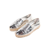 Details: Silver Metallic Leather / CC Logo at Vamps / Jute Trims / Rubber Sole