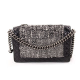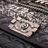 Description: Authentic Pre-Owned Chanel New Medium Enchained Leather Tweed Boy Flap Bag