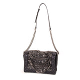 Details: Black Calfskin Leather / Black and White Tweed / Chain-Link Shoulder Strap with Leather Pad / Multiple Chains on the Front / Dual Compartment / Fabric and Leather Lining / Zipper Pocket at Inside / S-Lock Closure at Front Flap