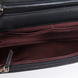 Details: Black Quilted Lambskin Leather / Silver Tone Hardware / Chain Link And Leather Shoulder Strap / Exterior Pocket At Back / Burgundy Grosgrain And Leather Interior / Six Card Slot At Interior / Three Interior Pockets / Two Zip Pockets / Snap Closure At Front