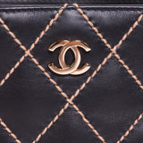 Details: Black Calf Leather / Gold Tone Hardware / Gilt Printed Label on Zip Pocket: "Chanel Made In France" / Dual Small Pocket / Single Zipper Pocket Inside