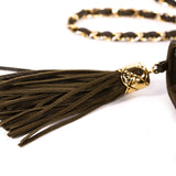 Details: Olive Green Quilted Suede / Gold Tone Hardware / Single Shoulder Strap With Chain-Link Leather Accent / Interior Black Leather / Single Zip Pocket At Wall / Tonal Leather Trim / Tassel Accents / Snap Closure At Front