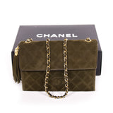Description: Authentic Chanel Quilted Suede Flap Bag