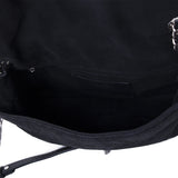 Details: Black Quilted Fabric / Silver-Tone Hardware / Chain-Link and Leather Shoulder Strap / Stitches and Camelia Flowers Throughout the Exterior / Black Canvas Interior Lining / Zipper and Small Flat Pocket at Inside / Turn-Lock Closure at Front Flap