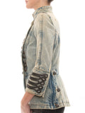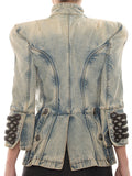 Description: Balmain Style Runway Military Denim Light Blue With Embroidered Metallic Detailing