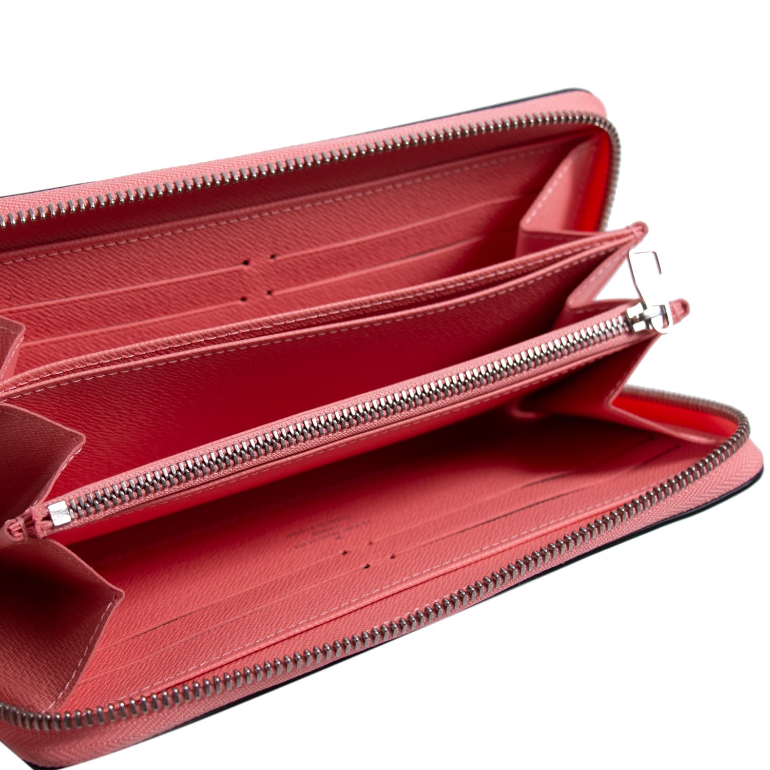 Details: Blue, White and Black Epi Leather / Silver-Tone Hardware / Pink Fabric Trim / Pink Leather Interior Lining / 4 Compartments / One Zipper Pocket / Three-Bill Slots / 8-Card Slots / Zipper Closure at Top
