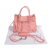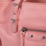 Details: Pink Calf Leather / Silver-Tone Hardware / Dual Rolled Handles / Detachable Shoulder Strap / Zippers at Sides / Small Zip Pocket at Front / Interior Leather Lining / Slit Pocket at Inside Wall / Magnetic Fastening Closure at Top