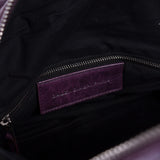 Details: Purple Leather / Silver-Tone Hardware / Dual Rolled Handles / Studs Embellishments Throughout / Zipper Pocket at Front / Black Fabric Interior Lining / Zipper Pocket at Inside / Zipper Closure at Top